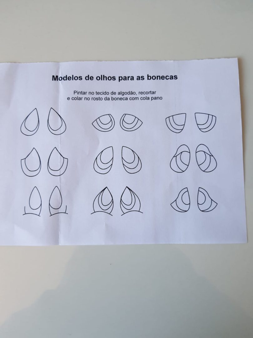 Tecido de algodão liso e estampado, manta acrílica, termocolante, tinta pva ou tecido para pintar os detalhes.