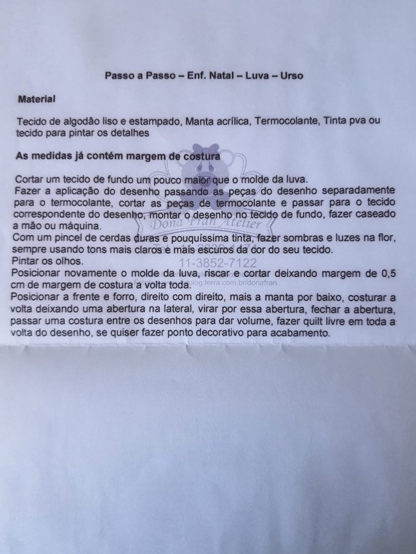 Cortar um tecido de fundo um pouco maior que o molde da luva.